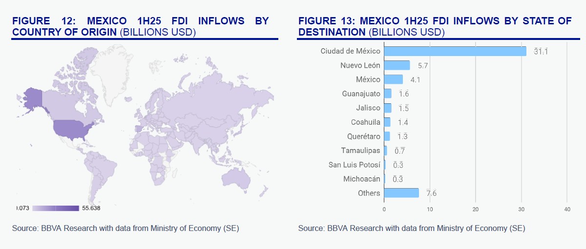 Geographically, investment remains concentrated in Mexico City (55.9%), followed by Nuevo León (10.3%), State of Mexico (7.4%), and Guanajuato (2.8%).