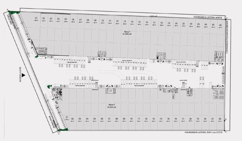 Industrial Warehouse & Logistics Facility – Key Specifications Divisible modules from 1,000 m² up to 20,000 m² Average clear height: 11 meters Tilt-up concrete wall construction Floor load capacity: up to 10 tons/m² Custom-built office areas according to tenant requirements Firefighting network and sprinkler system 8% natural daylighting inside warehouse areas Energy-efficient LED lighting throughout the facility One loading dock per 1,000 m² leased One concrete access ramp per user Parki...